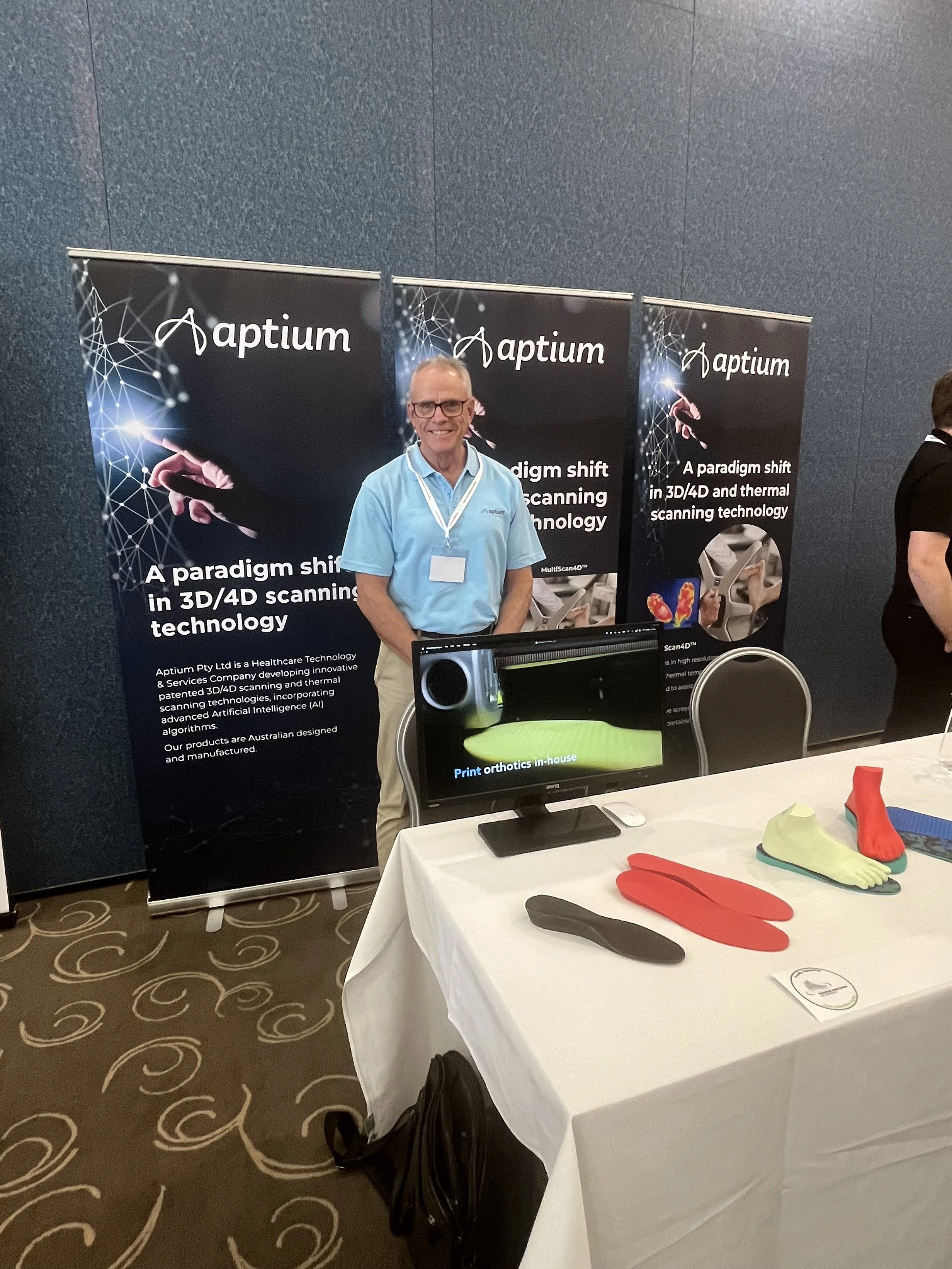 In September, Aptium was proud to participate in the Pedorthic Conference held at Kingscliff. The event provided an excellent opportunity to connect with industry leaders, share insights and explore the latest innovations and advancements in pedorthics. Representing Aptium were Carl Stubbings (President) and Alex Terrill (QUT), who showcased the MultiScan4Dā¢, engaging with fellow professionals and highlighting how this technology is shaping the future of foot health.